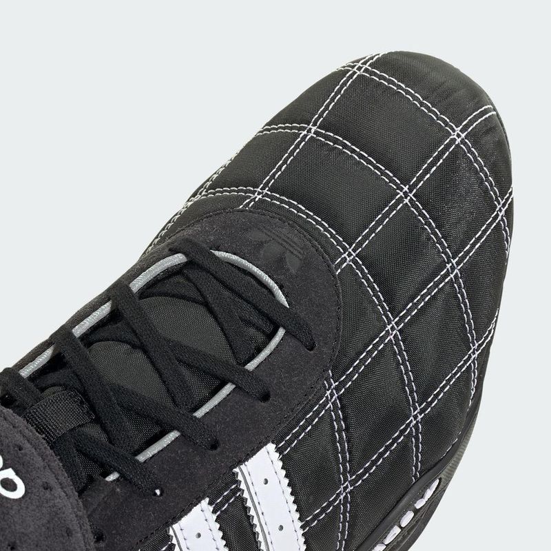 • Horma estrecha • Cierre de cordones con tira • Exterior de nylon y gamuza con detalles de cuero • Ribetes reflectivos • Inserción de carbono • Suela de caucho